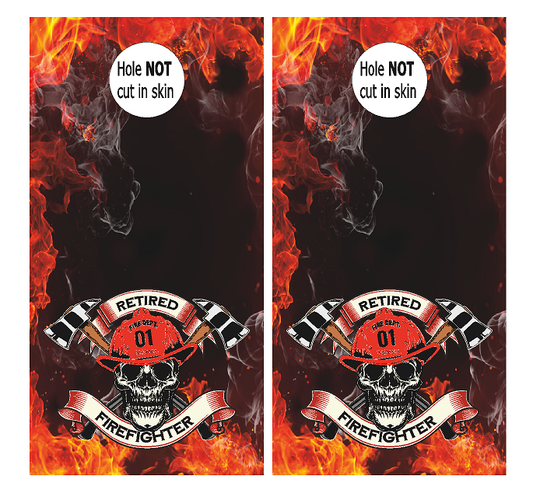 Retired Firefighter Skull (CH9) Set of 2 Cornhole Board Wraps Vinyl Decal Skins | Waterproof | Easy to Apply | Rapid Air Release by CustomDecal US